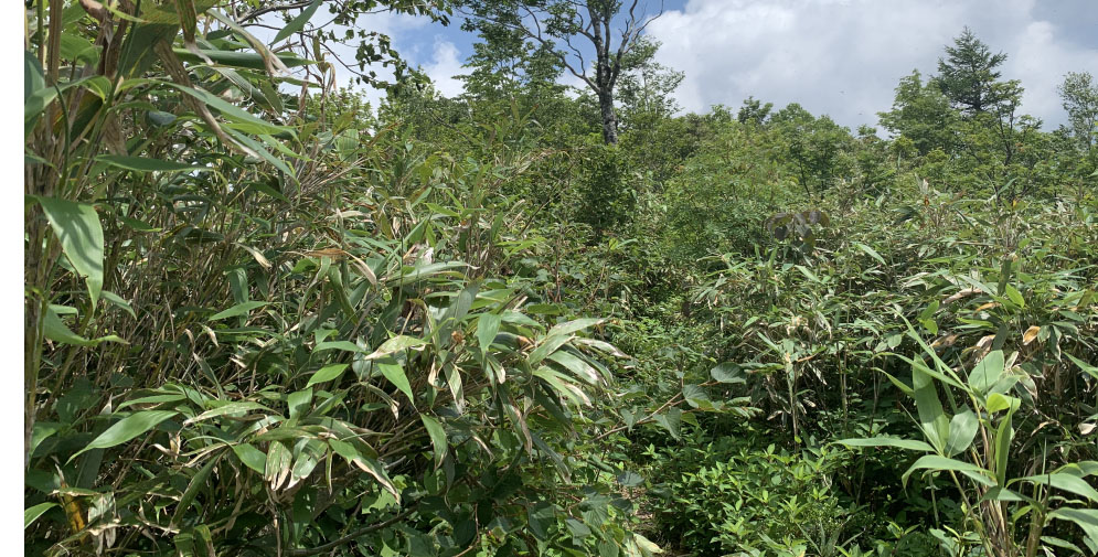 頂上に到着。この近くにも動物の糞が落ちていたので、油断はできませんね…。